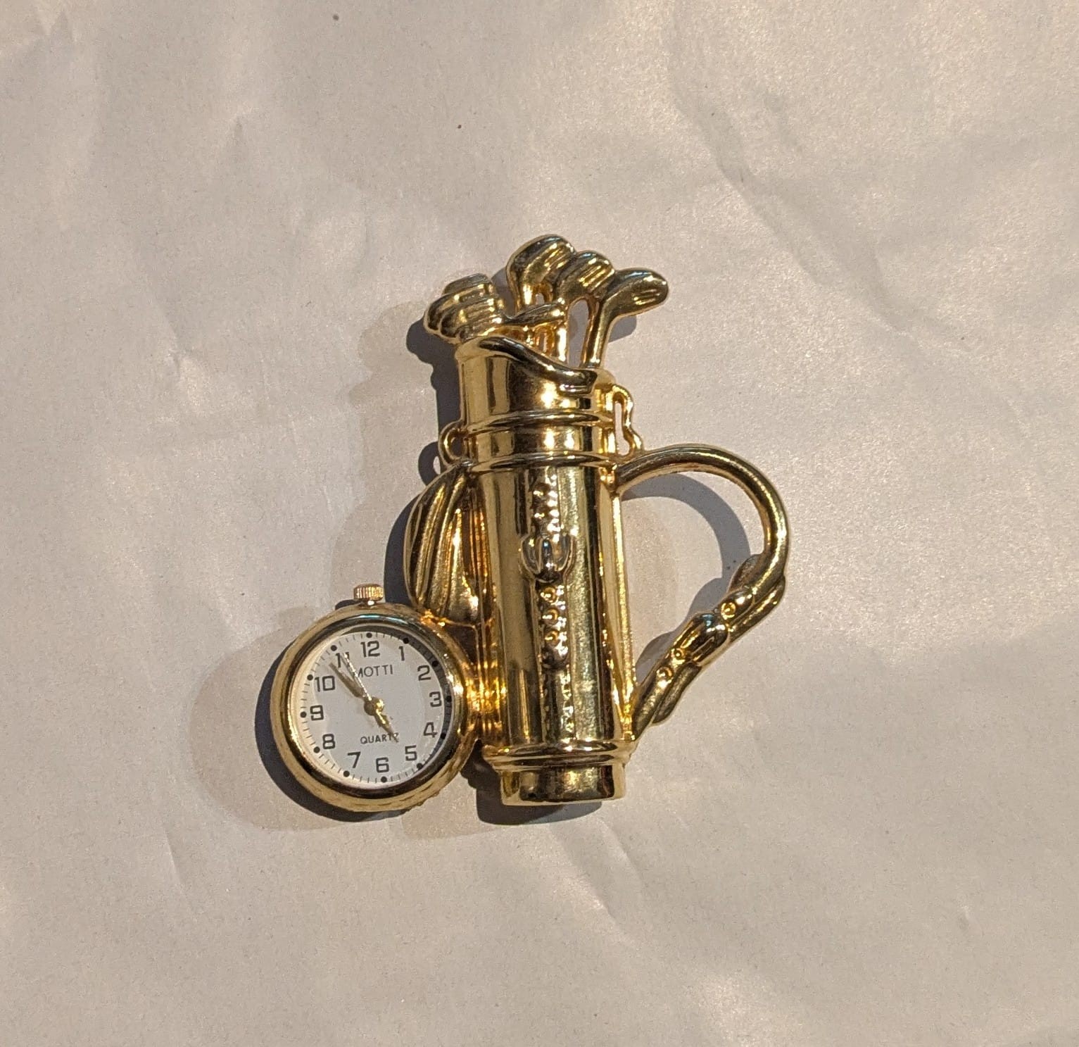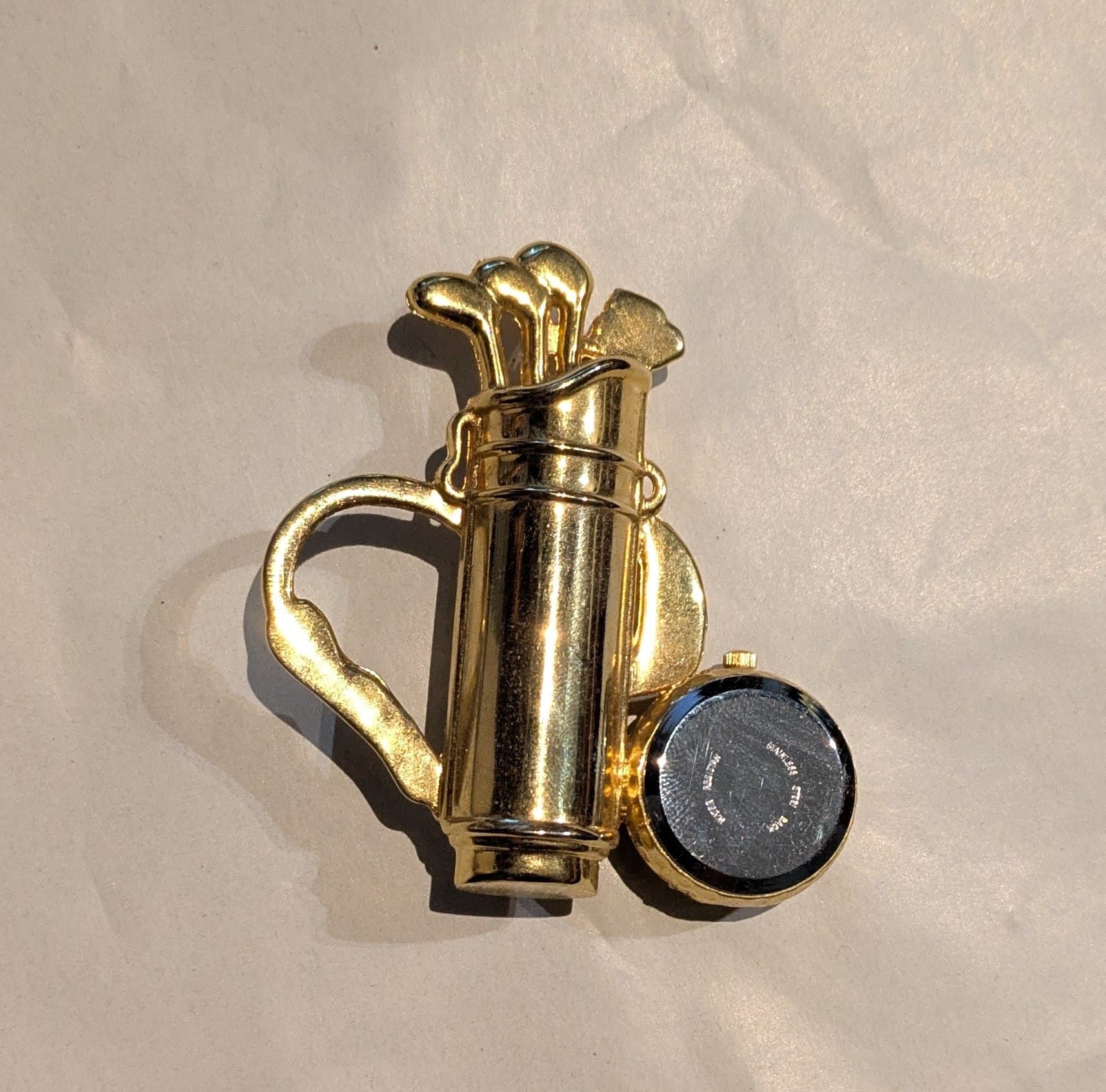 Mini horloge élégante sur le thème d’un sac de golf, avec mouvement à quartz Cardinal.