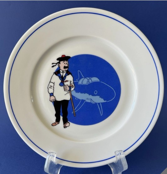 Assiette en porcelaine issue de la collection Tables & Couleurs, représentant une scène emblématique du célèbre album « Le Trésor de Rackham le Rouge ». Parfaite pour les collectionneurs de Tintin, les amateurs de porcelaine décorative, ou comme élément décoratif unique pour cuisine ou salle à manger. Cette assiette allie qualité de fabrication, couleurs fidèles aux illustrations d’Hergé et charme vintage. Diamètre 19,5 cm. En très bon état.
