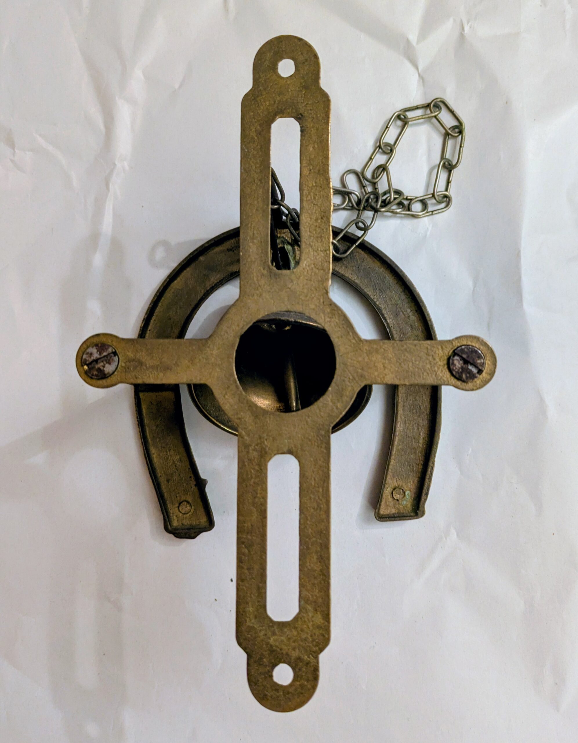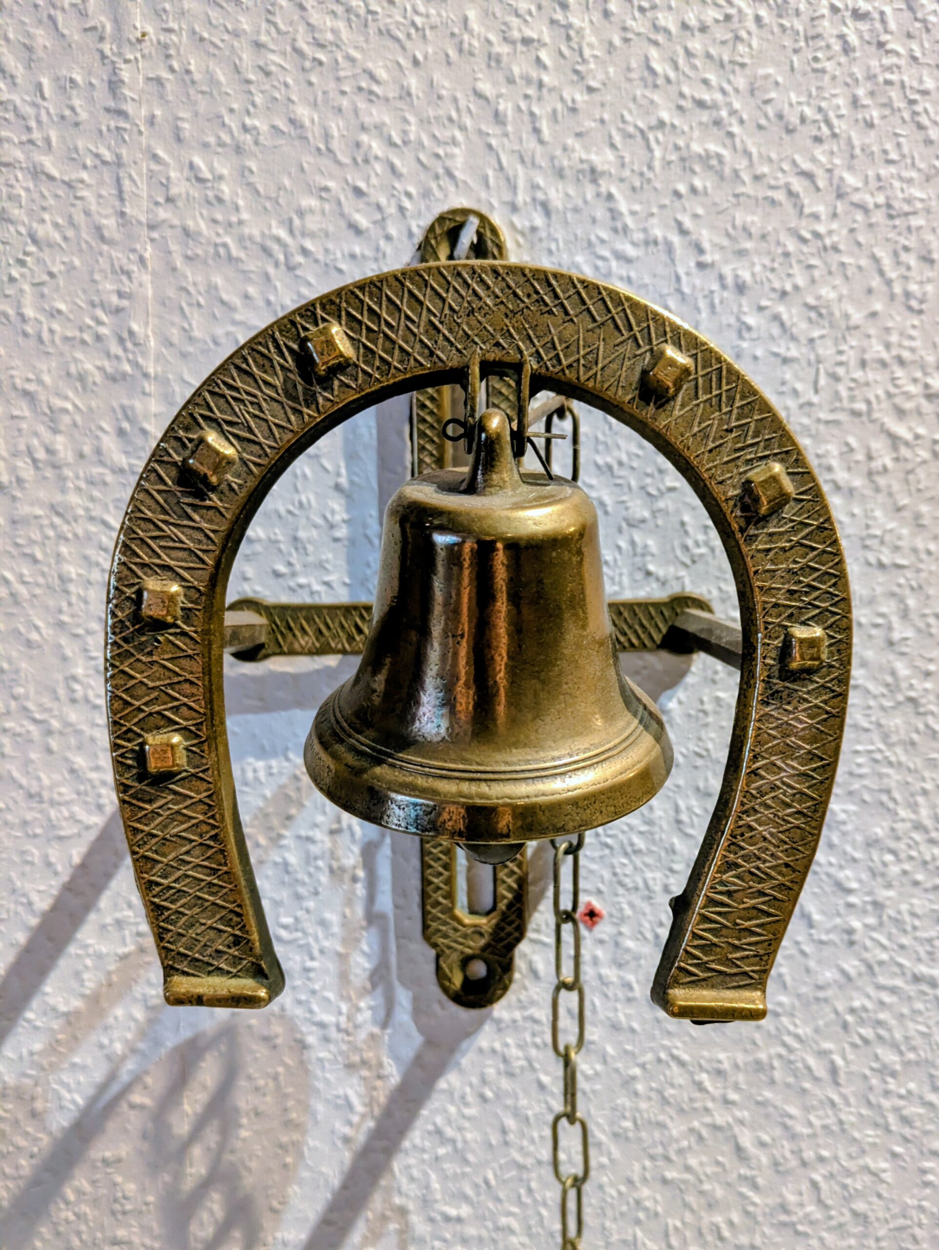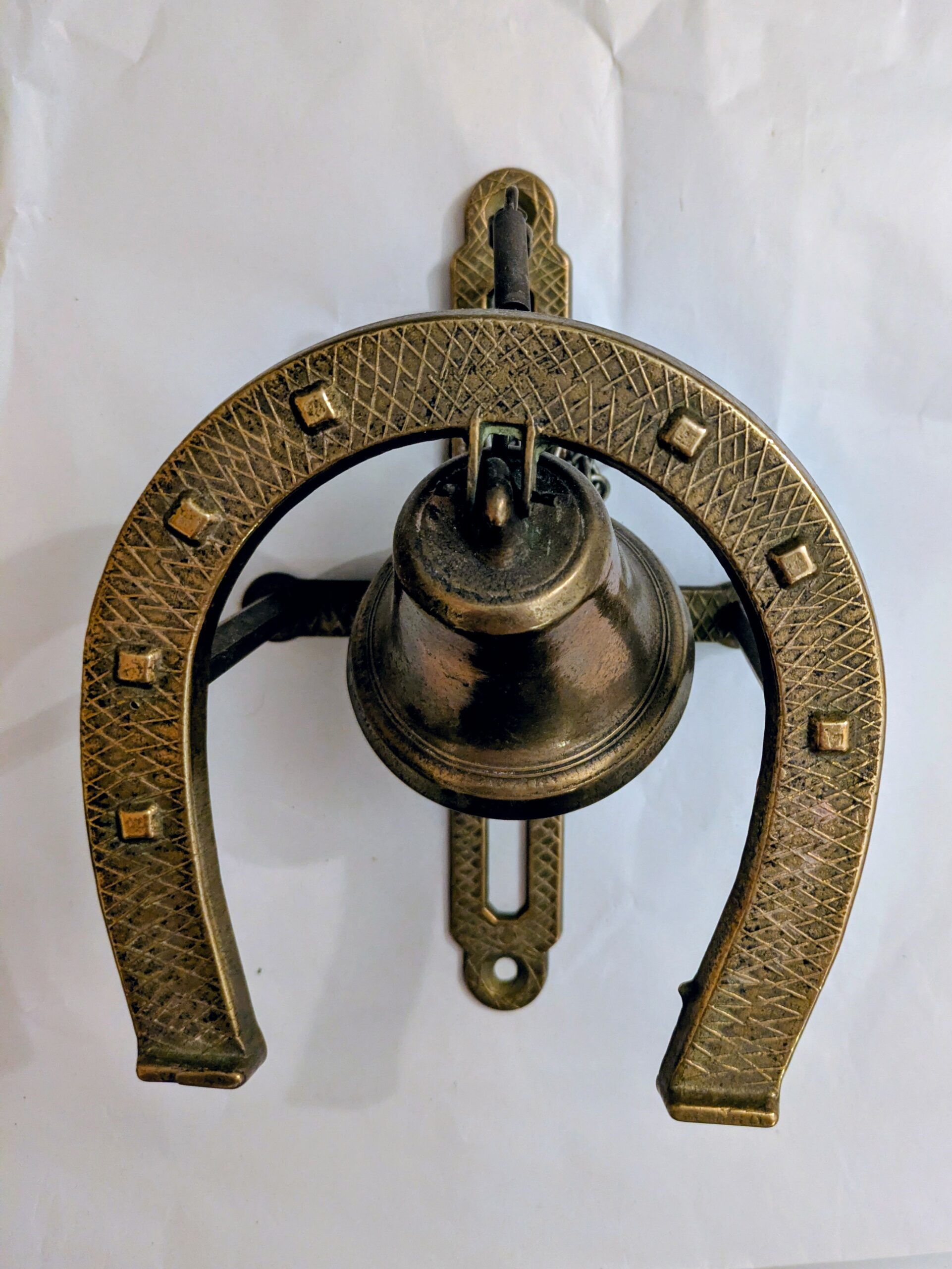 Ajoutez une touche d’authenticité et de charme à votre porte d’entrée avec cette cloche murale en métal alliage, ornée d’un fer à cheval décoratif. Mécanisme à ressort à l’arrière pour un son clair et agréable. En très bon état, fonctionnelle et prête à être installée. Parfaite pour accueillir vos invités avec style ou compléter une décoration intérieure/extérieur originale.