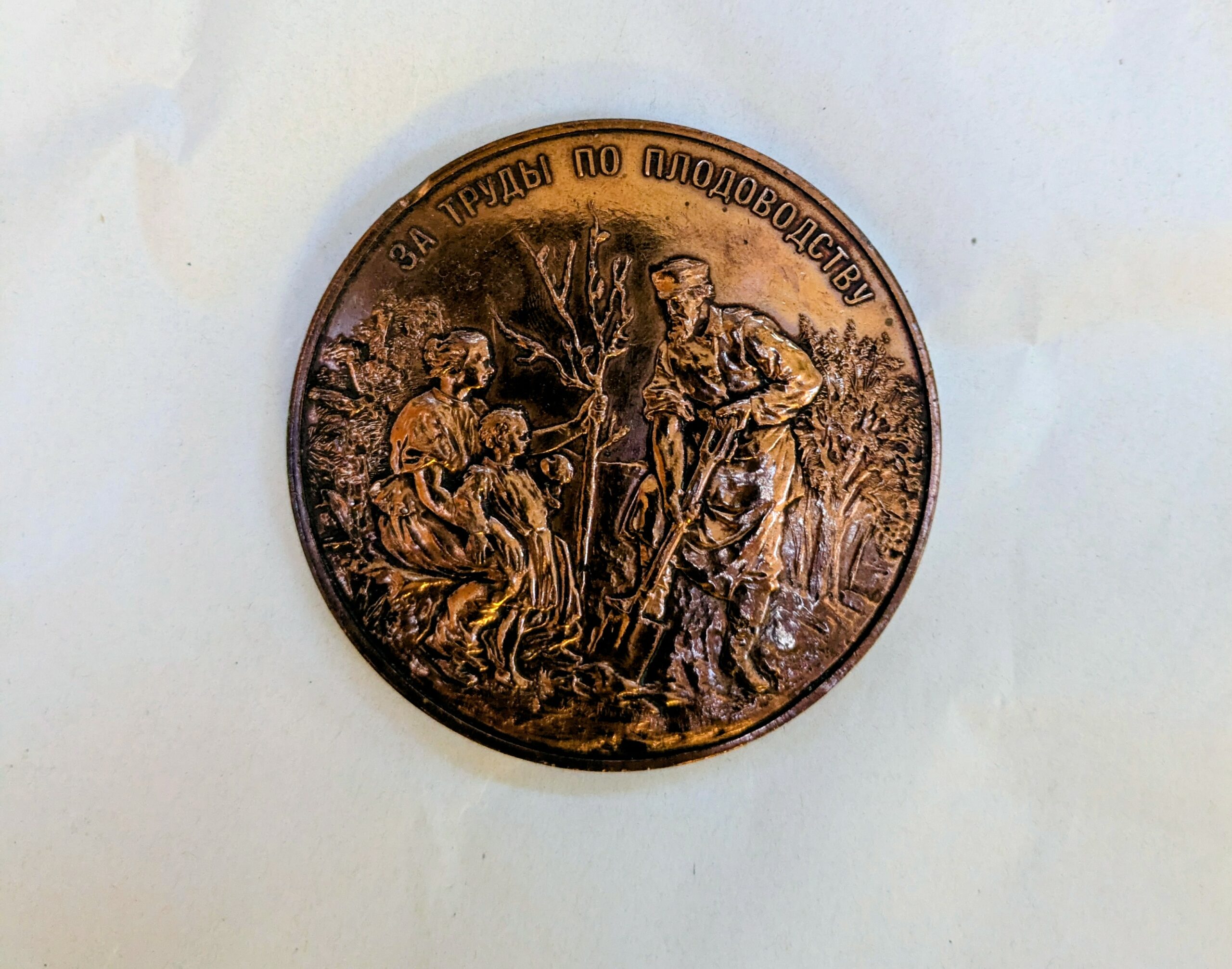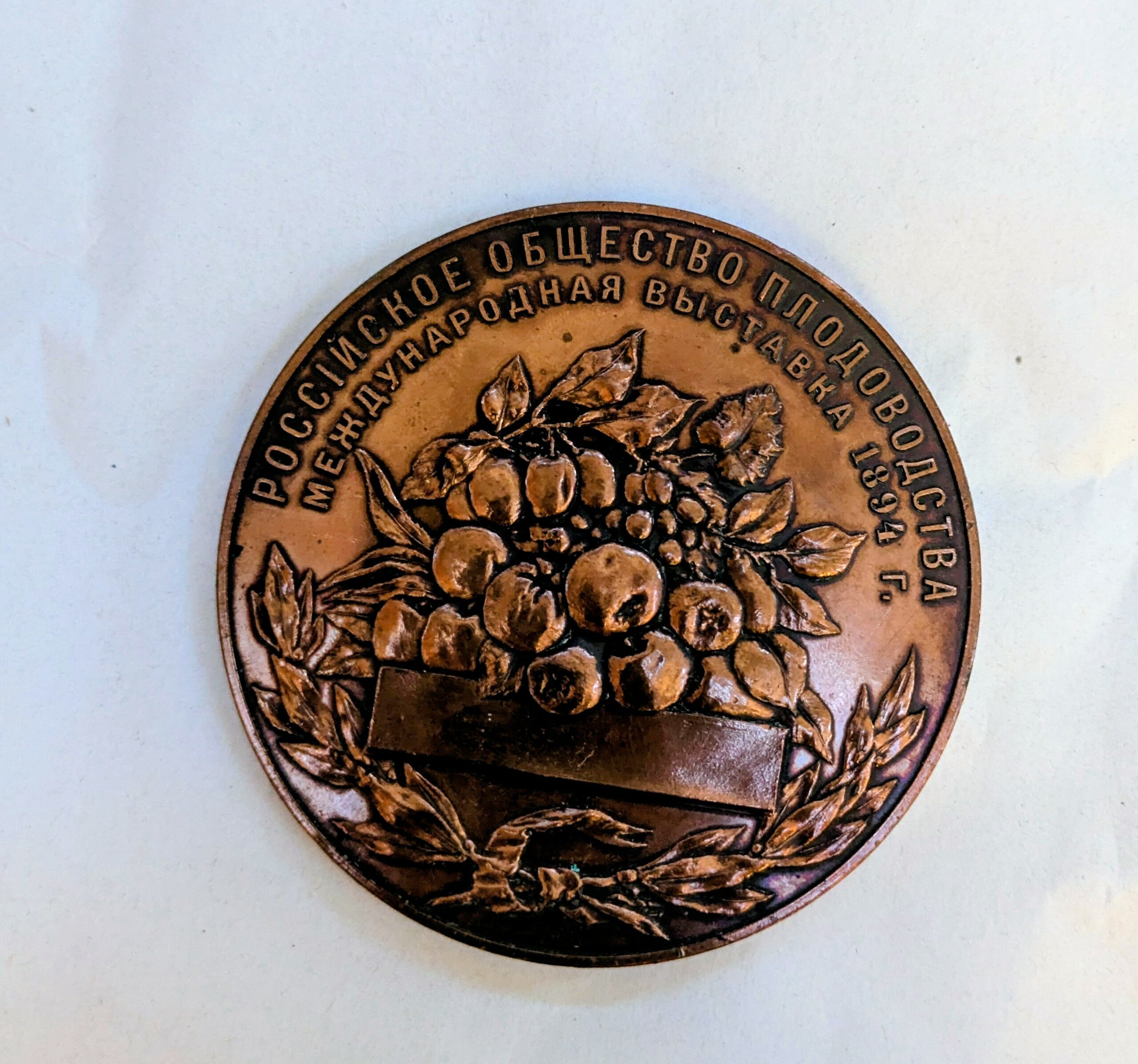 Médaille de la Société russe d’arboriculture fruitière de l’Exposition internationale de 1894 à Saint‑Pétersbourg en cuivre massif. Graveur S.Vazhenin